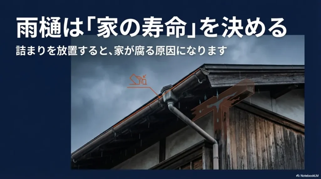 また、排水管の故障だと思っていたら、実は「雨樋の詰まり」による逆流(オーバーフロー)が原因だったというケースも意外と多いものです。