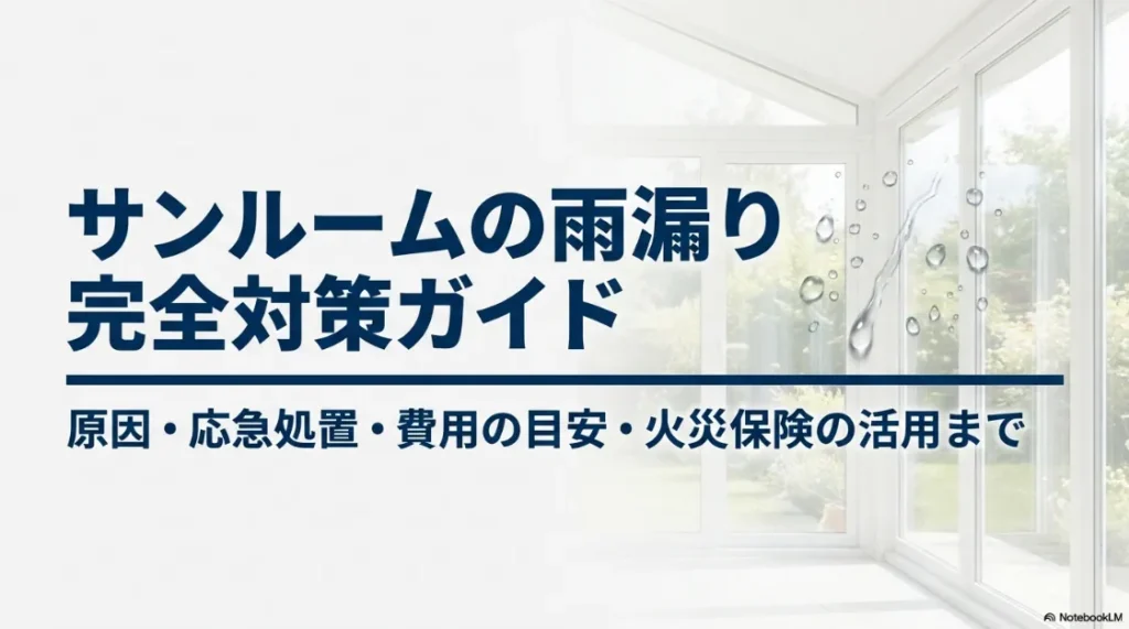 特に、住宅に後付けした「サンルーム」周辺の水漏れは、外壁を伝う雨なのか、サッシの隙間からの吹き込みなのか判断が難しい場所です。